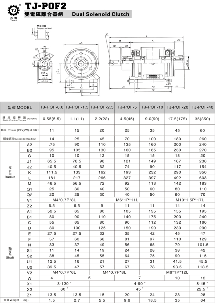 東莞天機(jī)傳動(dòng)(臺(tái)灣天機(jī)牌)生產(chǎn)廠家銷售的POF2型雙電磁離合器組合體又稱軸式雙電磁離合器組合體,是由兩個(gè)電磁離合器組合而成。采用的進(jìn)口原材料,臺(tái)灣生產(chǎn)加工技術(shù),用的是DC24V直流電壓,產(chǎn)品通過ISO9001質(zhì)量管理體系認(rèn)證,質(zhì)量放心可靠,讓客戶購買無憂。該P(yáng)OF2型雙電磁離合器組合體,軸式雙電磁離合器組合體結(jié)構(gòu)非常獨(dú)特,安裝也極為簡便。緊湊的貫通軸結(jié)構(gòu),即兩個(gè)電磁離合器都裝置在同軸上,極其的合理配置產(chǎn)著各種部件,是一種極其獨(dú)特的組合,適用于正反轉(zhuǎn)、變速、動(dòng)力分配、連接、切離、高速運(yùn)轉(zhuǎn)等多用途。可實(shí)現(xiàn)多種功能,由此機(jī)型可實(shí)現(xiàn)二級(jí)變速、高頻度正反轉(zhuǎn)等復(fù)雜并且高精度的控制等多種功能,同時(shí)可以實(shí)現(xiàn)傳遞機(jī)構(gòu)的簡單化,安裝和使用都極為簡便,耐用、實(shí)用。