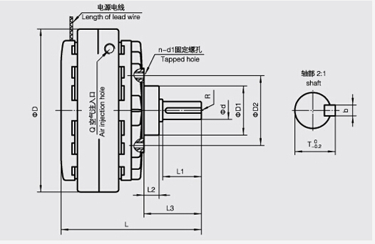 POD型磁粉制動器與磁粉離合器的原理相同,只要磁粉離合器的從動轉子加以固定,就形成了磁粉制動器。