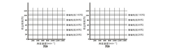 c、磁粉制動器的允許滑差功率,在散熱條件一定時、是定值。其實際選用選型時,實用滑差功率需在允許的滑差功率以內(nèi)。使用轉(zhuǎn)速高時,需降低力矩使用。其特性如圖C所示。