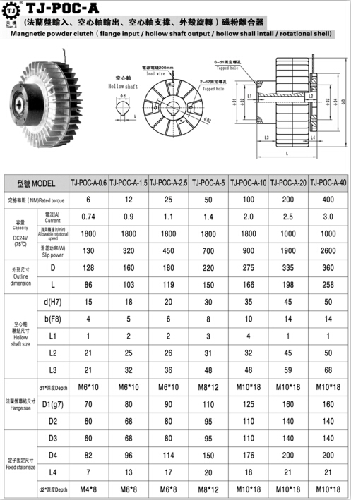 而內空心軸磁粉離合器的規格有:
