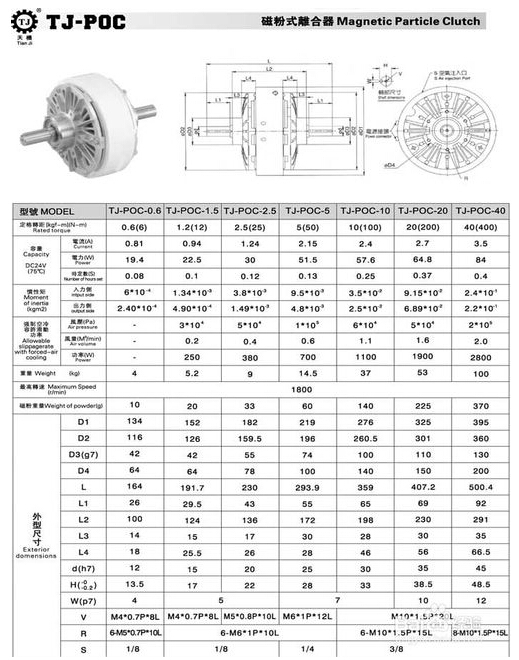 磁粉離合器廠家規(guī)格參數(shù)手冊-東莞天機傳動