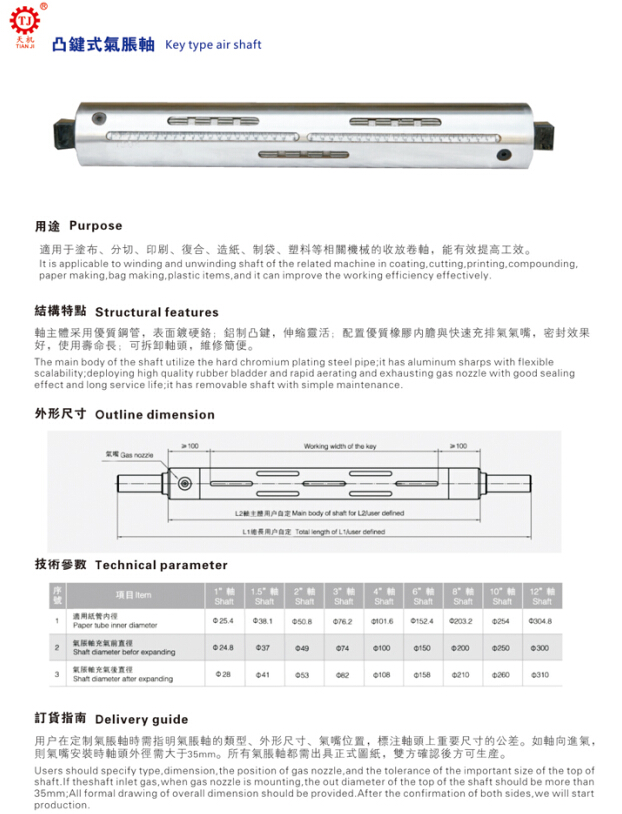 通長鍵氣脹軸,鍵條式氣脹軸,懸臂式氣漲軸
