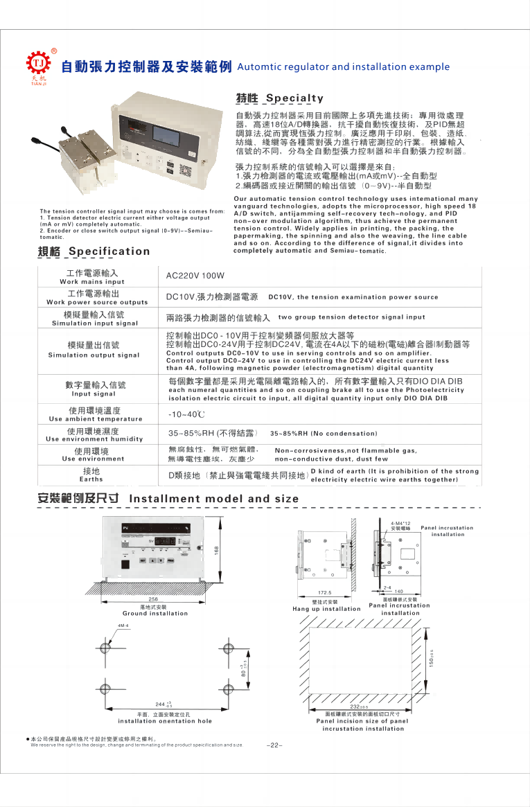 關(guān)于其接線情況參考產(chǎn)品使用說明書,請咨詢東莞天機傳動生產(chǎn)廠家供應卷徑型半自動張力控制器,演算型半自動張力控制器,包括手動張力控制器、全自動張力控制器,十多年臺灣品牌制造廠家。